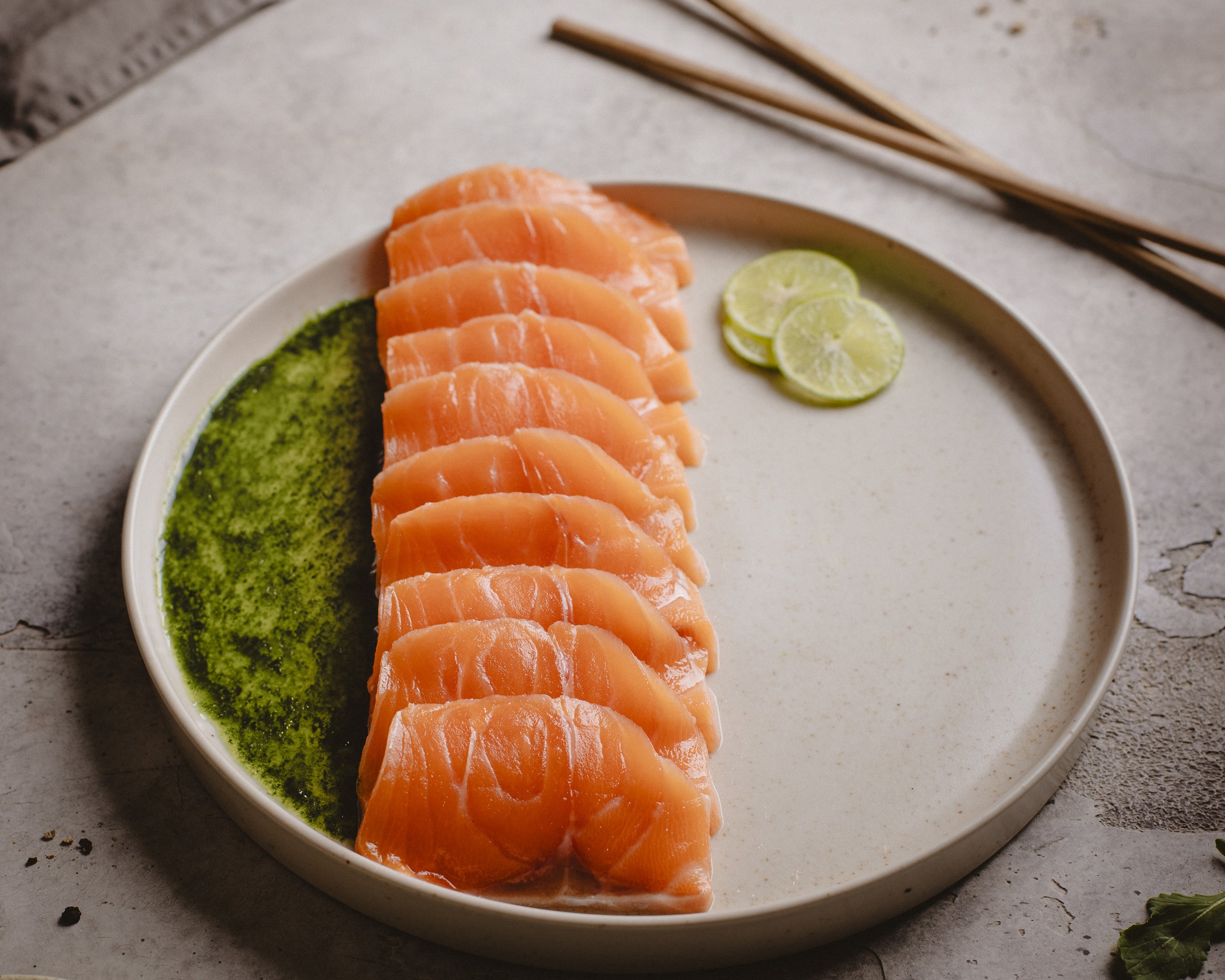 Filete de Salmón Atlántico sin piel. Perfecto para sashimi, preparaciones frías o de cocción ligera. Máxima calidad de exportación en categoría sashimi y con estándares de sustentabilidad certificados a través de todo su ciclo. Producto empacado directamente desde la planta propia de Cooke Chile en la X región.